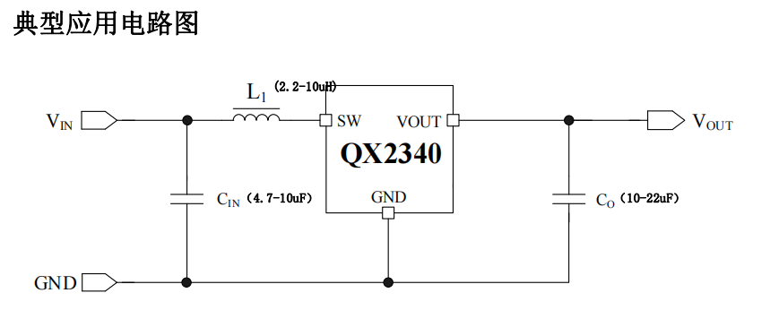QX2340 僅需三個(gè)外圍元件即可達(dá)到 所需輸出電壓,并支持小型的外部電感器 和輸出電容器;外圍成本極低。