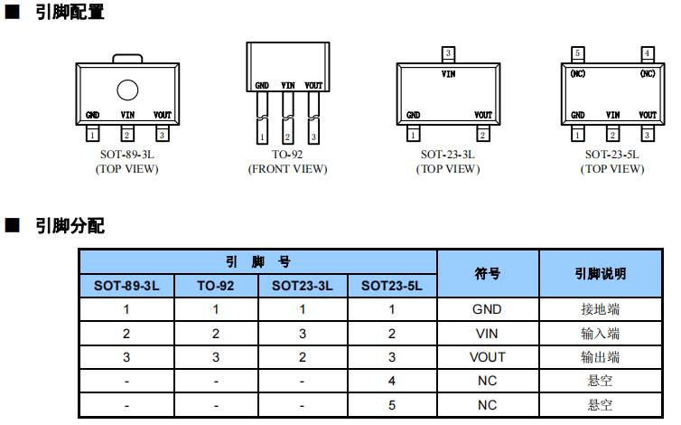 ? 小封裝形式 TO-92、SOT-89-3、SOT-23-3L、 SOT-23-5L 等